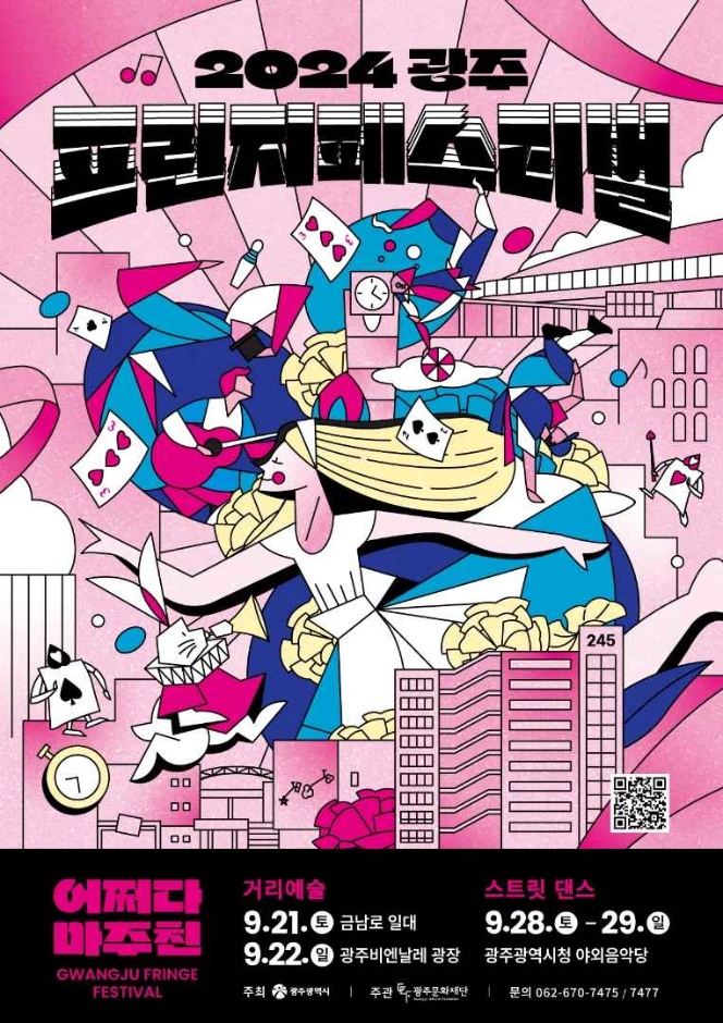 광주프린지페스티벌은 2024년 9월 21일부터 9월 29일까지 금남로 일대 ,광주비엔날레, 광주광역시청 야외음악당 등지에서 광주광역시가 주최하고 재단법인 광주광역시 광주문화재단 주관으로 펼쳐진다. 광주광역시 대표 공연예술축제 2024 광주프린지페스티벌이 주제멸로 거리예술, 스트릿댄스 등으로 이원화하여 금남로 일대에서 광주비엔날레에서 광주고앙역시청 야외음악당에서 개최한다. 올해로 9회를 맞은 광주프린지페스티벌은 광주비엔날레와 연계하여 어쩌다 마주친을 주제로 펼쳐진다.