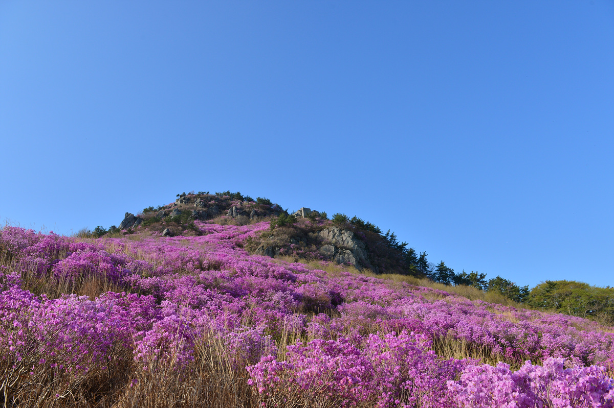 진달래 군락지 규모면에서는 여수 영취산, 창원 천주산 ,대구 비슬산과 비교하자면 조금 규모는 작을 지언정 진달래 꽃터널을 들어서면 환상적인 분위기를 느낄 수 있다. 진달래 군락지는 양떼들에 의한 자연훼손으로 인하여 조성되었다는 사실을 알면 어떠한 생각이 들까? 진달래는 먹지 않고 다른 나무와 풀은 다 먹어버린 결과이다.