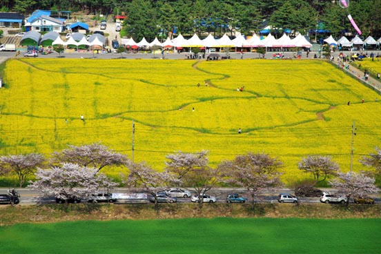 아이들이 가장 좋아하는 것은 평소와는 다른 거대한 비누방울 체험이 있다. 평화스러운 봄날의 정겨움이 유채꽃밭에서 묻어난다. 유채꽃은 꽃이 피기 전에는 봄나물로도 유명하다 연한 유채잎과 줄기로 유채 나물을 만들어 먹는데 특유의 향긋함 덕분에 봄별미로 사랑을 받고 있다. 겨울을 이겨내고 봄을 맞는 식생 덕분에 한약재로도 쓰인다. 축제장 꽃밭 안으로 길을 내어 유채꽃밭 사이로 산책을 할 수 있다. 노오란 유채꽃밭을 산책하면서 봄을 한껏 느껴보자. 노오란 봄이다.