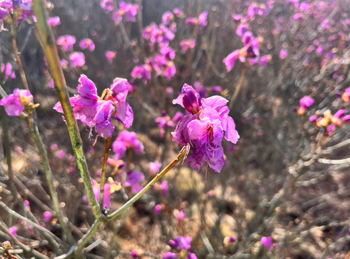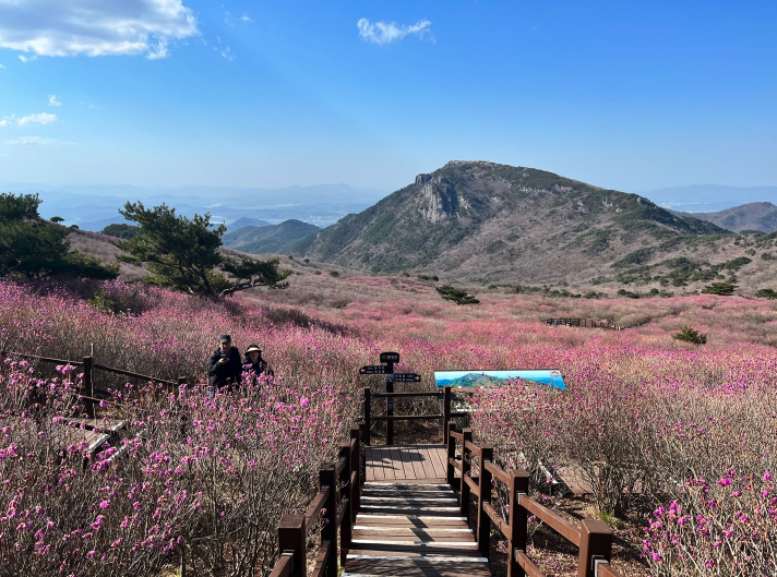 참꽃군락지는 먹을 것이 여의치 않아 배를 곯던 그 옛날 화려하게 봄을 표현하던 모양새로 마음의 위안을 주고 ,봄 간식거리로 허기짐을 해결해주던 진달래는 참꽃이라 하며 새로운 이름을 얻었다. 비슬산 참꽃군락지는 봄이 오면 그 시절 추억과 향수를 가득 단고 피어난다. 비슬산 정상 30만평의 광활한 평원에 펼쳐진 진분홍의 천상화원은 보는 이로 하여금 일상을 벗어나 신선의 세계에 와 있는 듯한 착각마저 하게 만들어준다.