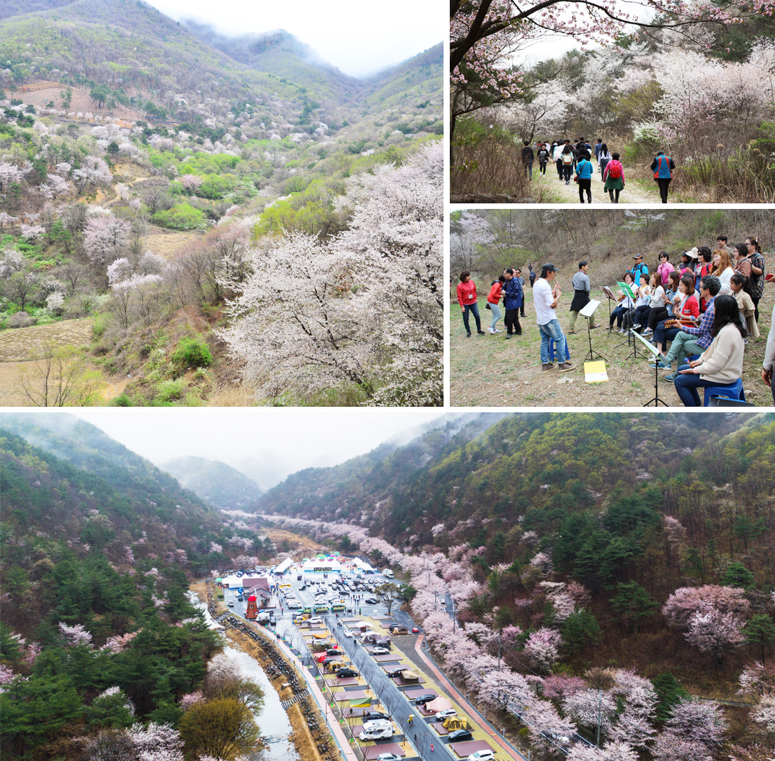 금산 보곡산골 산벚꽃 축제는 2024년 4월 6일부터 2024년 4월 14일까지 산꽃벚꽃마을 오토캠핑장 일대에서 펼쳐진다. 행사가 열리는 보곡산골마을은 국내 최대의 산벚꽃 자생 군락지로 약 1,000만㎡의 넓은 산자락을 화려한 산벚꽃이 차지하고 있다. 그 밖에도 산딸나무, 병꽃나무, 조팝나무 ,진달래, 생강나무 등이 자생하며, 앞다퉈 꽃을 피워 내는 무공해 청정지역이다. 이름 모를 야생화들이 아기자기하게 피어 있어 보이네요 길에서 자진뱅이 길까지 가는 오솔길을 찾아 걸어보자.