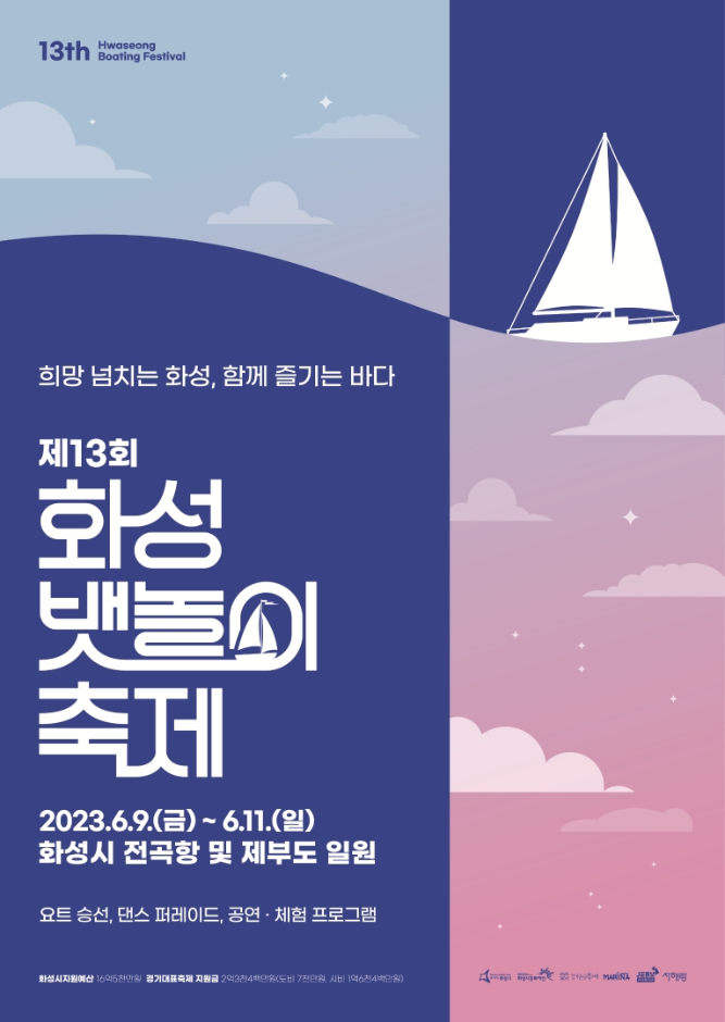 화성뱃놀이축제는 2024년 5월 31일부터 2024년 6월 2일까지 화성시 서신면 전곡항에서 펼쳐진다. 화성시 대표축제 화성 뱃놀이 축제는 요트 승선체험을 할 수 있는 해양 문화 축제이다. 올해 축제 최초로 밤바다 승선체험을 진행한다. 해상 케이블카와 제부 마리나를 연계하여 다채로운 요트 승선 체험을 선보이고 수상 스테이지 공연을 볼 수 있는 전국 최초의 해상 파티 프로그램이 진행된다. 시민의 열정으로 거리를 채우는 바람의 사신단 시민 댄스 퍼레이드도 확대되어 펼쳐진다.