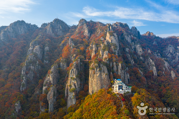 대둔산은 고도 878m로 전북 완주군 운주면 산북리 611-34에 자리하고 있으며 노령산맥 줄기가 김제의 만경평야를 향하다 금산지역에서 돌긻된 산군을 이루며 절경을 이룬 곳이 대둔산이다. 호남의 소금강이라 불리는 이 산은 정상인 마천대를 비롯하여 사방으로 뻗은 여러 산줄기가 어우러져 칠성봉, 장군봉 등 멋진 암봉을 이루고, 삼선바위, 용문골의 장군봉, 칠성봉, 금강통문의 동심암, 금강암, 약수터 ,삼선암, 왕관암, 마천대 등 사방으로 기암괴석과 수목이 어우러져 산세가 수려하다.