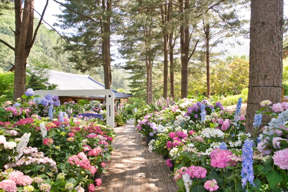 서늘한 그늘을 좋아하는 다양한 수국들이 잣나무 숲 사이에 펼쳐져 지친 일상에 싱그러움을 불어 넣어줄 것이다 .250여 점에 달하는 넓은 잎수국, 떡갈잎수국, 미국수국, 산수국 등의 멋진 수국을 한눈에 감상하며, 자연의 아름다움과 조화롭게 어우러지는 경험을 함께 할 것이다. 각종 포토존이 마련되어 아름다운 사진을 만나볼 수 있으며 소중한 순간들을 수국의 화려한 배경과 함께 남길 수 있을 것이다.