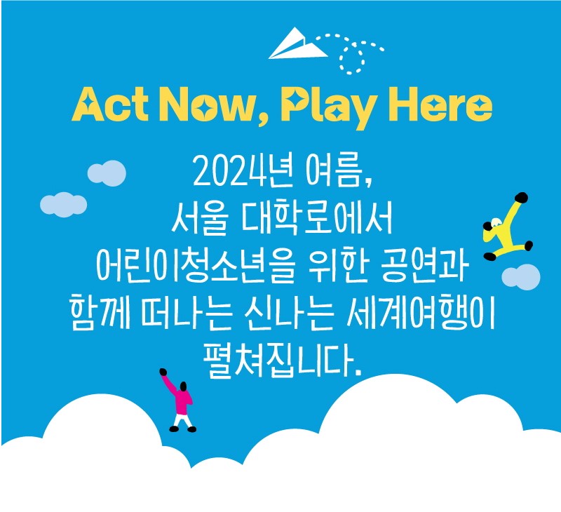 4세 이상 미취학 어린이부터 어른까지 공연과 전시가 결합되어 관람하고 체험하는 공연으로 체코 떼렌의 햇살 따뜻한 오후에 찾아온 특별한 손님은 띵똥, 햇살 가득한 오후, 관객 여러분을 초대한다. 우리 작은 인형들과 함께 재료를 만들어 그림도 그리고 전시도 만들어 봐요, 6세 이상 초등학생부터 청소년까지 생각하는 힘을 가진 청소년을 위한 공연으로 문제적 핑크는 캐나다-프랑스 공동제작, 아시아 초연, 생각은 달라도 친구가 될 수 있어, 핑크 논쟁이 블러온 포용과 자기 긍정,