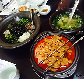 문경 맛집 모심정을 찾았다. 이곳은 식당이라고 말하기보단 전통음식체험관이라고 불리는 곳으로 선조 때부터 먹어왔던 된장이나 간장, 장아찌 등의 발효음식이나 향토 음식을 계승하고 발전시켜온 곳이다. 또한 음식 체험관, 교육관, 전시실, 발효체험관, 약초 카페 등을 운영하여 사람들에게 음식을 통해 전통문화를 더욱 가깝게 느끼도록 해주고 있다. 산채비빕밥과 향이 좋은 문경표고버섯으로 만든 표고맑은탕, 그리고 제육볶음 표고발효액을 뿌린 표고발효액탕평채 정확하게 기억은 나지 않지만 문경사과와 문경오미자로 만든 소스를 뿌린 오미자사과소스샐러드로 기억한다. 제육볶음은 먹는동안 식지않게 냄비 아래쪽에 촛불에 불을 피워 놓았다 7가지 문경산채를 볶아서 비빔밥을 만든 문경산채두레. 고사리, 취나물, 참나물, 다래순, 뽕잎,..