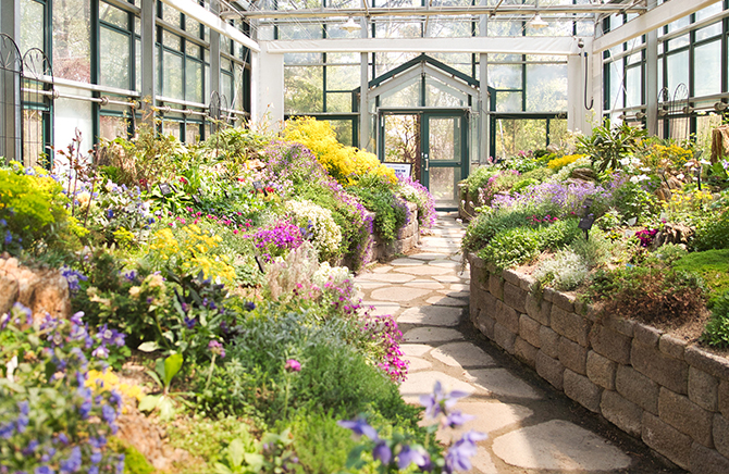 알파인온실과 고산암석원은 평상시 잘 보지 못했던 야생화가 많이 자라고 있다. 나무와 꽃을 구경하며 걷다 보면 각 계절에 맞춰 자연스러운 식물들이 어울리도록 배치하여 정원을 꾸미고 있다. 사자락을 따라 조성된 아침고요수목원은 정원을 따라 흐르는 시원한 계곡이 자리하고 있으며 시원한 소리를 내며 물이 흐르는 구간이 자리하고 있다. 물을 건너는 다리도 마련되어 있으며 징검다리도 마련되어 있다. 계곡가에 캠핑 의자를 놓고 쉬어가보자.