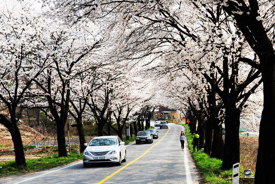 하얀 벚꽃과 함께 형형색색의 봄꽃이 새봄의 정취를 느끼게 하는 청풍호벚꽃축제